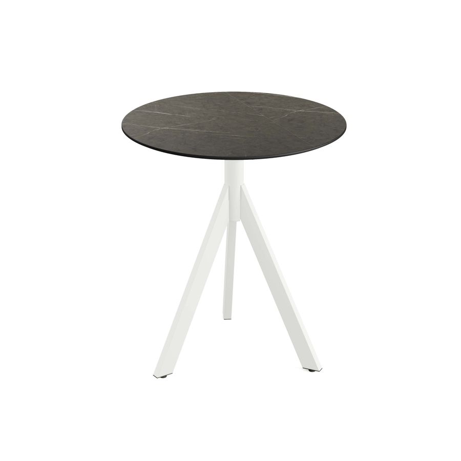 Feros Infinity Tripod Terrassentisch Weiß frame + Midnight Marble HPL Ø70 cm