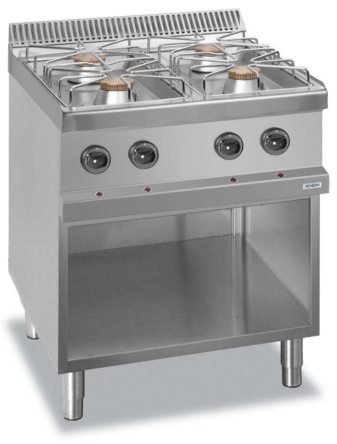 • Gasherd mit 4 Flammen und offenem Unterbau