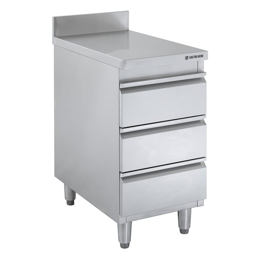 Edelstahl-Schubladenschrank BASIC 3er Einheit 600 mit Aufkantung